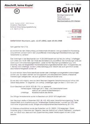Mein Schreiben an die BGHW.