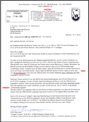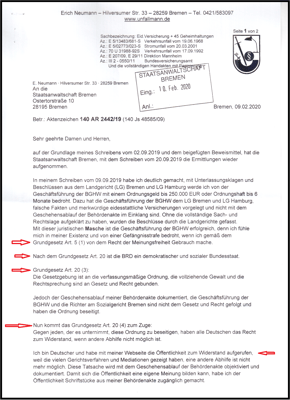Mein Schreiben an die STA Bremen