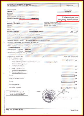 Festgesetztes Ordnungsgeld: 1500 €, ersatzweise ein Tag Ordnungshaft je 500,- Euro