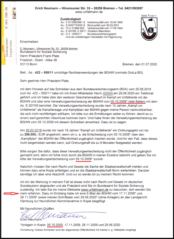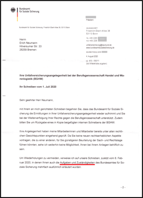 Das BVA ist nun zum Bundesamt für Soziale Sicherung geworden. Dem Bundesamt habe ich am 01.07.2020 die Geheimakte vom 05.10.2009 (drei Seiten) anvertraut. Und habe um weitere Aufklärung gebeten.