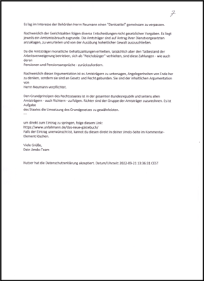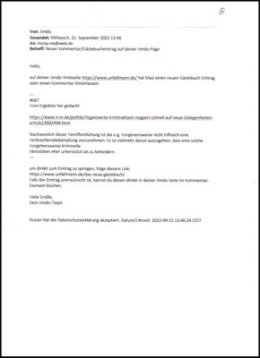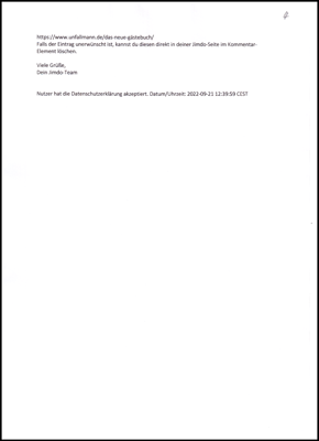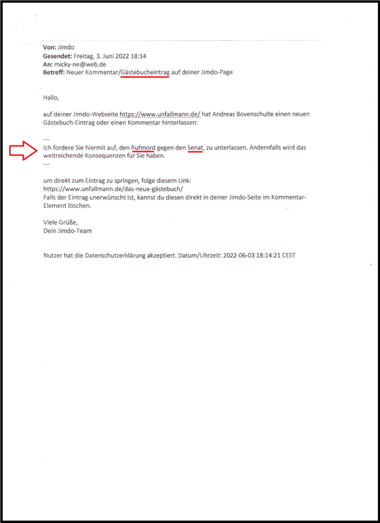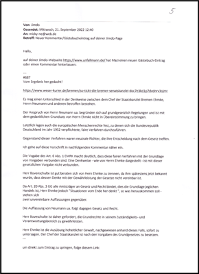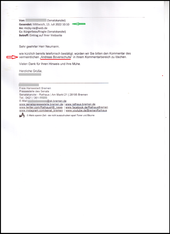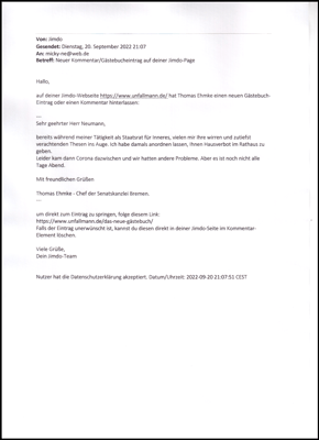 Danach(!) hat am 20.09.2022 um 21:07 Thomas Ehmke - Chef der Senatskanzlei Bremen in meinem Gästebuch den folgenden Eintrag gemacht: