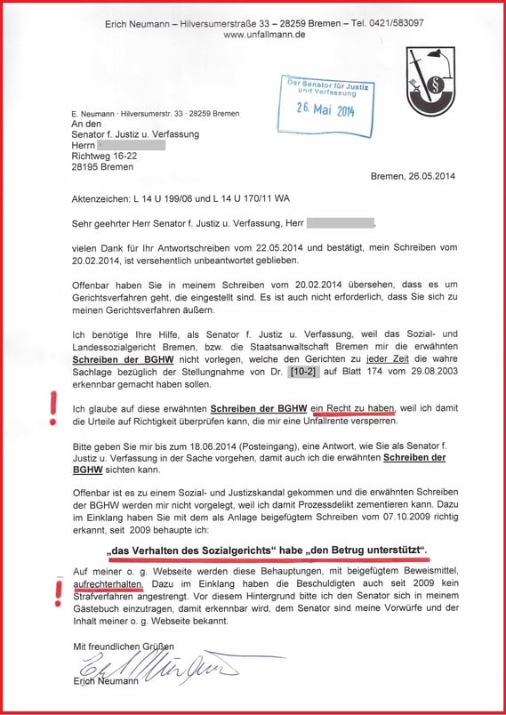 Nun wurde der Eingang meiner Schreiben bestätigt und an den Senator für Inneres weitergeleitet wurden. Darüber wurde ich aber nicht informiert. Auch von dem Senator für Inneres habe ich darüber keine Information erhalten. So ist bis dato auch unbekannt, ob die Geheimakte vom 05.10.2009 den Senator für Inneres erreicht hat und wie die Senator damit umgeht.