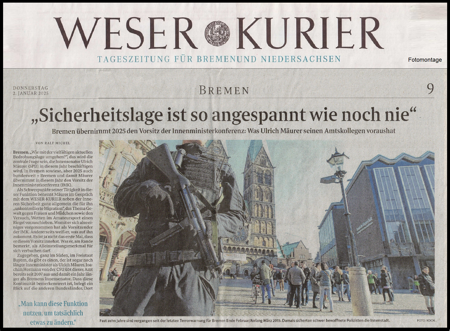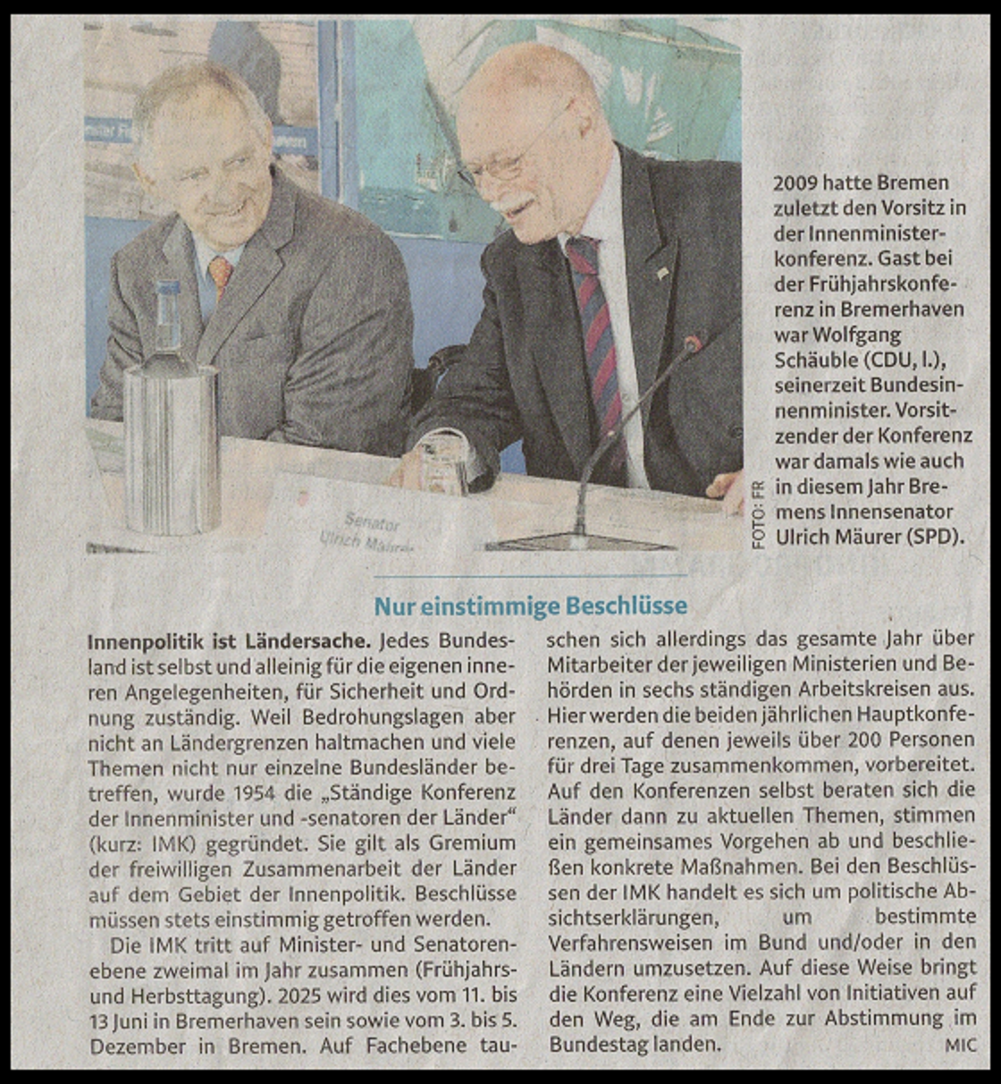 Bremen übernimmt 2025 den Vorsitz der Innenministerkonferenz und der Senator für Inneres (SPD) kann nicht einmal in Bremen - dem kleinsten Bundesland - für die Sicherheit der Bürger & Unfallopfer sorgen.