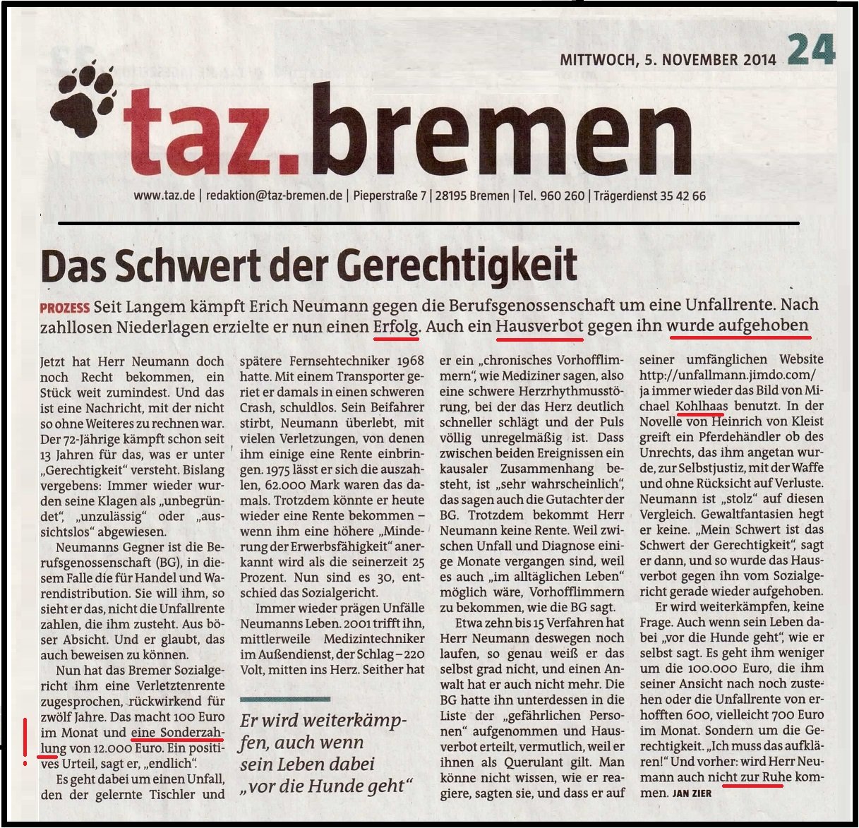 Am 24.06.2013 hat die Beklagte (BGHW) das SG Bremen zum Nebenkriegsschauplatz ernannt. Es ist der Ansatzpunkt: Im "Kampf um Gerechtigkeit" stehe ich zwischen zwei Fronten und wollen mich Verhandlungsunfähig machen.