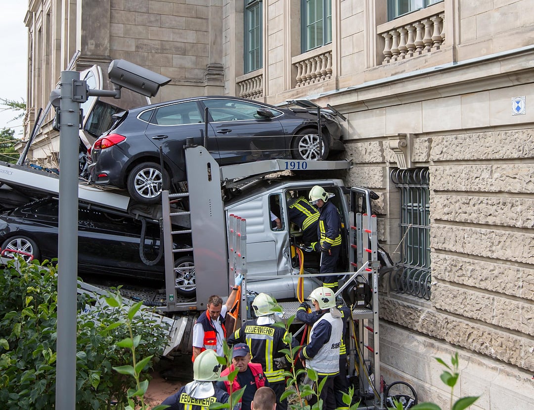 Autos wirbelten durch die Luft;