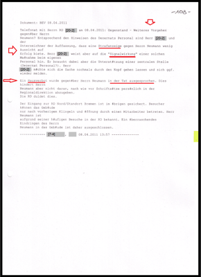 "Ich trete gegen eine "kriminelle Vereinigung" an, die nach Stasi-Manier vorgeht, die niemals Zurückrudern wird und vom Gesetzgeber mit Freiheitsstrafe bedroht wird. Ich könnte der 2. "Gustl Mollath" werden und soll auf meine Gesundheit aufpassen. Und die Staatsanwaltschaft Bremen wird keine Ermittlungen einleiten."