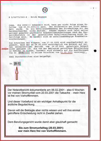 Dazu im Einklang liegt das medizinische Gutachten aus dem Herzzentrum vom 21.07.2008 vor. Insoweit war der Richter [11-15] auch nicht berechtigt eine Aussage zu machen. Und tatsächlich zu einem falschen Urteil im Sinne der Beklagten geführt hat. Die "Bande" hat keine Amtshilfe zugelassen und haben die Fehler und Folgen bis dato nicht aus der Akte beseitigt.