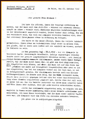 Dazu im Einklang liegt die Feldpost vom 23.10.1942 vor mit der schlimmsten Meldung über unseren Vater.