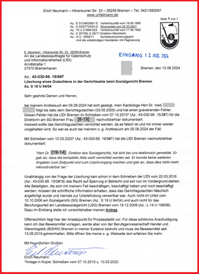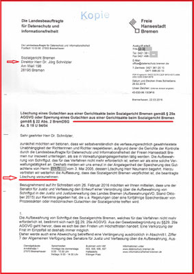An das LSG Bremen, Löschung wurde unterlaufen!
