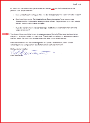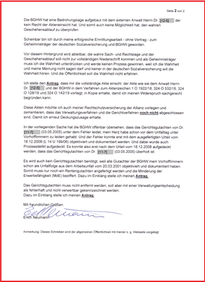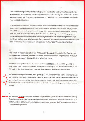 Mein Antrag, das Gerichtsgutachten aus der Akte zu löschen.