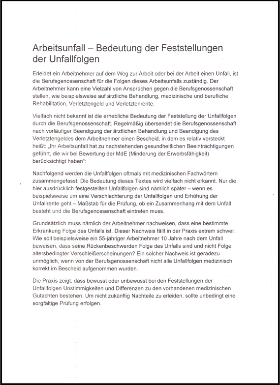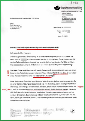 Es ist offensichtlich, die Nebenerscheinungen sind nicht Entschädigt worden. Dazu im Einklang liegt die folgende Stellungnahme aus dem Gutachtenzentrum der BG Hamburg vor.