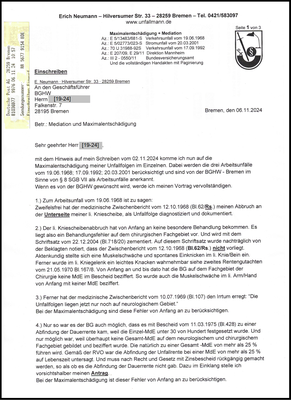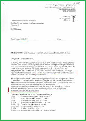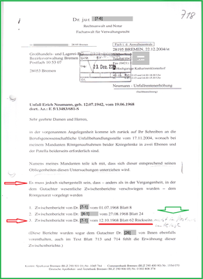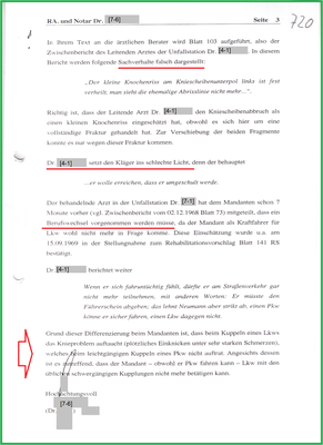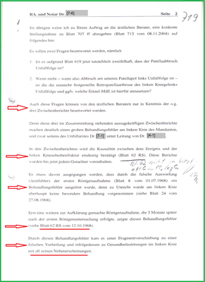 Anwalt berichtet über das Verschweigen wichtiger Zwischenberichte und über den angesagten Berufswechsel. Dem nicht genug wurde der grobe Behandlungsfehler am li. Knie deutlich gemacht.