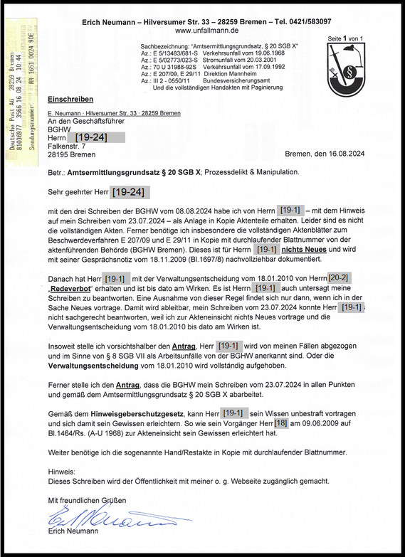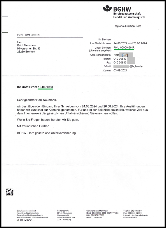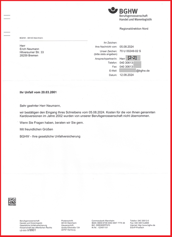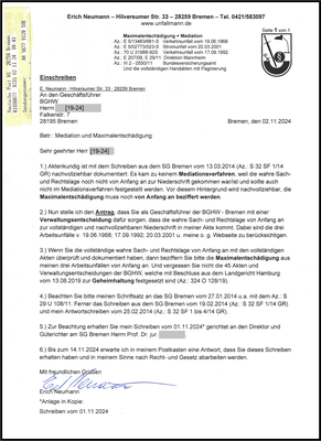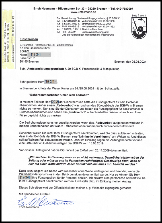 02.11.2024: Mein Schreiben an den Geschf. der BGHW Bremen