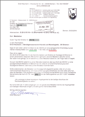 Richter Herr Dr. [19-14] ist nun der Direktor am Sozialgericht Bremen und darüber wurde in der Öffentlichkeit am 17.08.2016 informiert. Und Herr Dr. [19-14] ist in Prozessdelikt verwickelt, den die Beklagte (BGHW) unglaublich und raffiniert mit krimineller Energie eingefädelt hat.