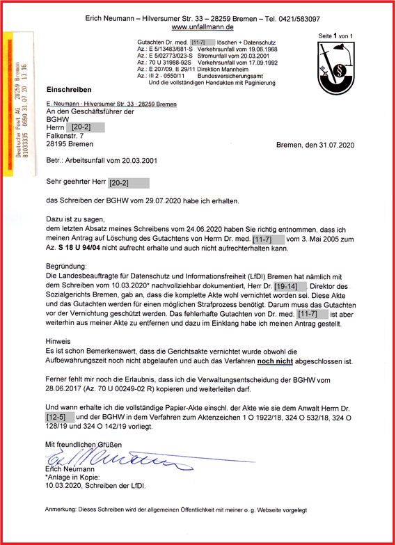 Schreiben der BGHW die Löschung wurde unterlaufen!