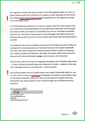 Die Stellungnahme dokumentiert die Bedeutung der Feststellungen von Unfallfolgen.
