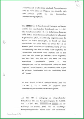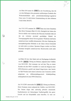 Arztbrief bestätigt das Zurückhalten von Beweismittel und eine Teil-MdE 10%. Aber die BGHW wurde nicht verurteilt.