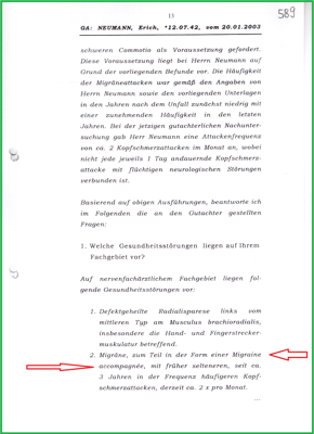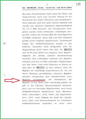 Bei den "anfallsartigen Kopfschmerzen" (Teil-MdE 15%) kommt hinzu, dass es sich hierbei nicht um eine Diagnose, sondern um ein Symptom handelt. Die BGHW hat also die Nebenerscheinungen nicht im Bescheid übernommen und somit auch nicht entschädigt. Obwohl eine Migräne accompagnée von den Gutachtern der BGHW diagnostiziert wurde.
