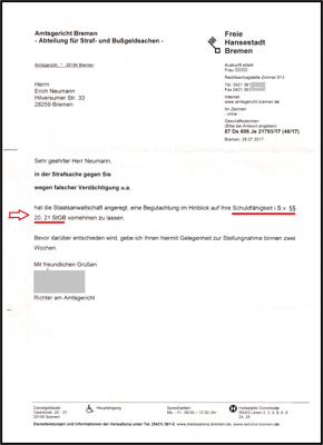 Jedoch das Amtsgericht Bremen hat eine Anregung erhalten wie das Schreiben vom 21.12.2023 bestätigt. Ich muss noch klären, von wo kam diese Anregung?