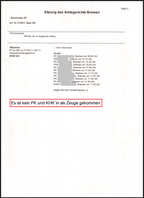 Mit Beschluss wurden die Verfahren eingestellt, weil die Zeugen nicht eingetreten sind. Und so ein Verfahren wollte der Richter nicht haben.