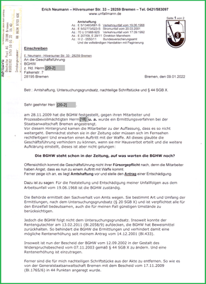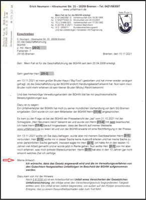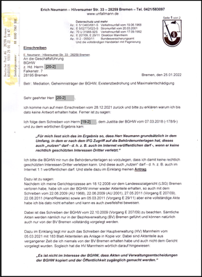 Am 10.03.2020 ist bekannt geworden, dass die Gerichtsakte vernichtet wurde. Wann und wer die Akte vernichtet hat ist angeblich nicht mehr nachvollziehbar. Da müsste sich wohl mal die Staatsanwaltschaft Bremen einschalten und könnte die Aufklärung betreiben.
