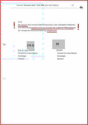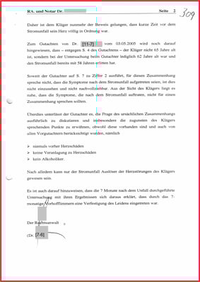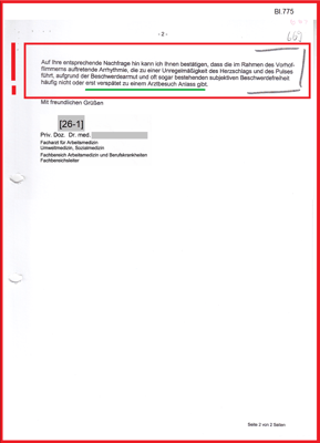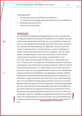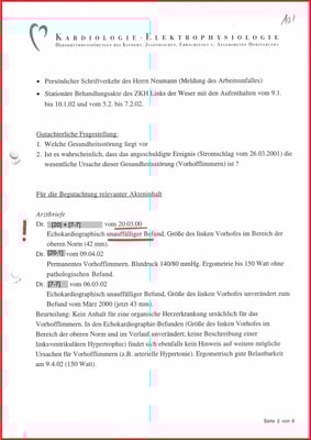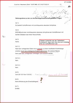 Obwohl dem Gutachter nicht bekannt war, dass es für die Begutachtung den ausschlaggebenden Vorbefund vom 06.02.2001 gibt, der glaubhaft gemacht hat, bis zum Unfalltag war mein Herz frei von Vorhofflimmern.