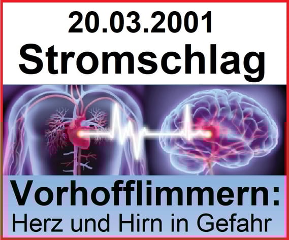 Stromschlag 220 Volt mitten durch mein Herz und hat chronisches Vorhofflimmern (VHF) ausgelöst. So haben es die medizinischen Gutachten der BGHW am 15.11.2002 und 27.10.003 dokumentiert. Und mit dem Notarztbericht vom 06.02.2001 konnte glaubhaft gemacht werden, bis zum Unfalltag dem 20.03.2001 war mein Herz frei von VHF. Das VHF steht im Ursachenzusammenhang mit meinem Schlaganfall vom 07.12.2021. So ist es in dem Arztbericht des Kardiologen vom 09.12.2021 dokumentiert.