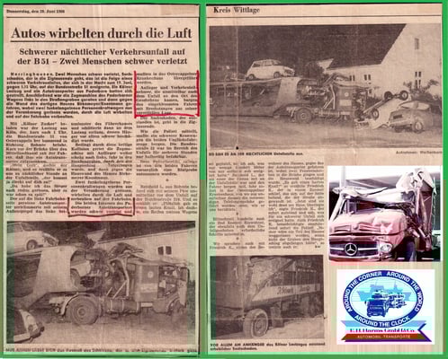 Am 19.06.1968 kam es zu meinem ersten Arbeitsunfall. Als Fahrer diese Autotransporters der Fa. E. H. Harms (jetzt BLG Bremen) kam mir ein alkoholisierter LKW Fahrer in die Quere. Kostete meinem Beifahrer das Leben und meine Gesundheit.