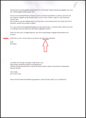 Meine Antwort im Gästebuch zur Sache "Stasiakte"