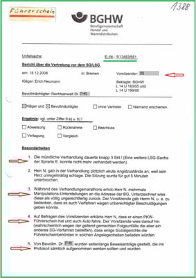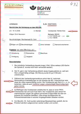 Beklagte BGHW hat selbst die Vorwürfe über Manipulation dokumentiert.