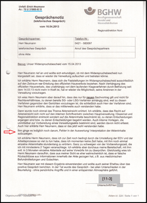 Darauf erklärt die nicht aktenführende BGHW Mannheim mit Schreiben vom 26.07.2010 es würde keine Pflichtverletzungen geben und beseitigt auch keine für mich nachteiligen Schriftstücke.