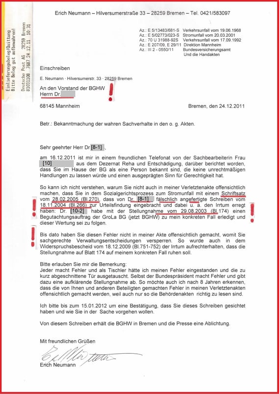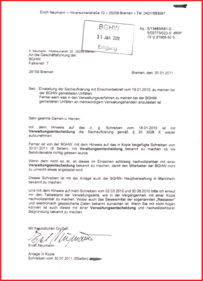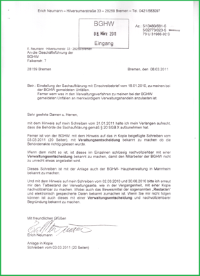 Schreiben an den damaligen Geschäftsführer der BGHW in Bremen