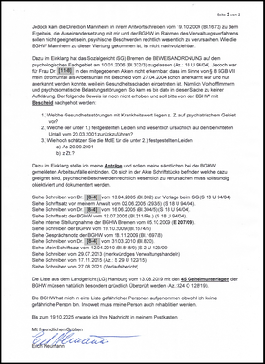 Dieses Schreiben vom 05.10.2009 (drei Seiten) wurde in eine Liste mit 45 Akten und Verwaltungsentscheidungen von der BGHW aufgenommen und diese darf ich der Öffentlichkeit seit dem 13.08.2019 nicht mehr zugänglich machen und auch nicht kopieren. Und werde dazu von der BGHW mit einem Ordnungsgeld von bis zu 250.000 Euro bedroht. Ersatzweise bis zu zwei Jahre Ordnungshaft.