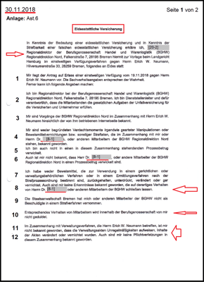 einmal im Original greifbar vorgelegt werden. Ferner ist offensichtlich zu machen, wer den externen Anwalt beauftragt hat, dass die merkwürdige eid. Versicherung vom 5.12.2008 dem LG Hamburg vorzulegen ist. Es geht um ein "Redeverbot" und von dem Geschäftsführer der BGHW mit der folgenden Verwaltungsentscheidung vom 18.01.2010 nachvollziehbar dokumentiert ist und noch am Wirken ist.