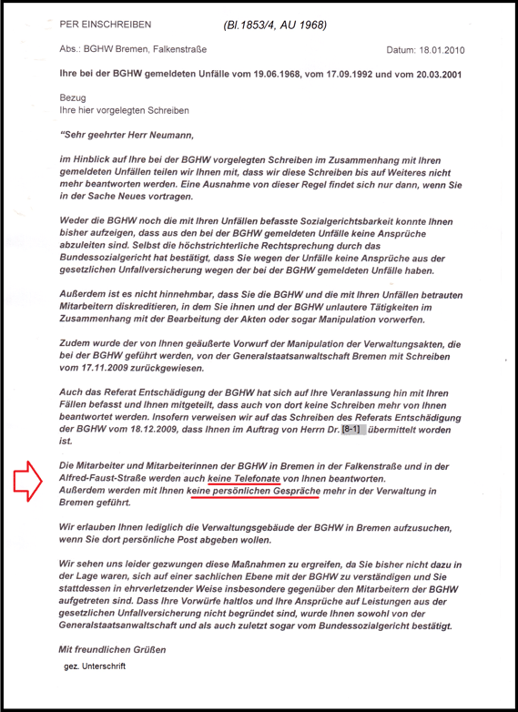 Der Geschäftsführer der BGHW Herr [20-2] hat meine Bestrafung im Visier und etwas anderes kommt scheinbar nicht mehr in Frage.