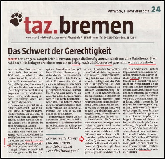 Die Presse berichtet weiter über meinen Erfolg und über das Hausverbot und "Das Schwert der Gerechtigkeit"