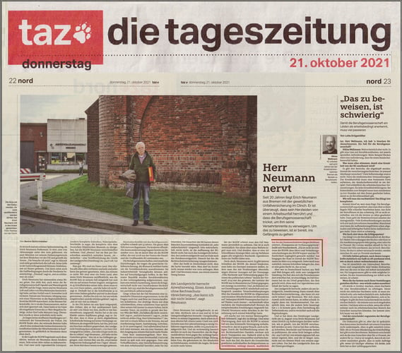 Nach meinem Fahrradsturz hat die BGHW keine vollständige Aufklärung vorgenommen, dazu im Einklang die Verwaltungsentscheidung vom 02.11.2023 vor. Nun muss die BGHW eine erneute Entscheidung treffen. Die erneute Entscheidung liegt dem Sozialgericht (SG) Bremen mit meiner Klage vom 12.02.2024 vor (Az.: S 2 U 12/24). Weil die Beklagte (BGHW) wieder keine vollständige Aufklärung durchgeführt hat. Mehr lesen