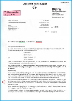 Erst darauf hat die BGHW am 02.09.2014 mit einer Strafanzeige gegen meine Person reagiert.