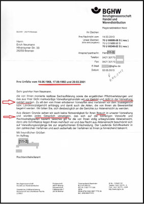 Es folgen meine Schreiben an die BGHW