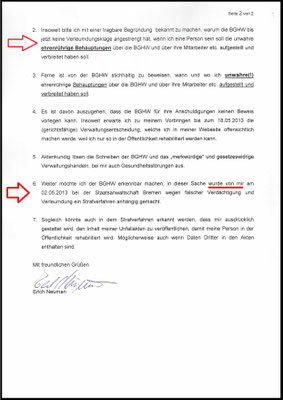 Im Hinblick auf die Vorwürfe des Herrn Neumann gegen die BGHW und ihrer Mitarbeiter bitte ich zusätzlich (und allein schon aus Führsorgegesichtspunkten) zu prüfen, ob Strafrechtlich gegen ihn vorgegangen werden soll."
