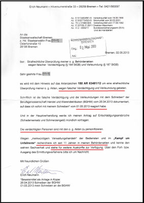 13.05.2013: Mein Schreiben an die STA Bremen