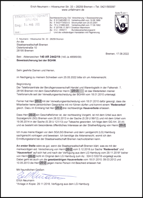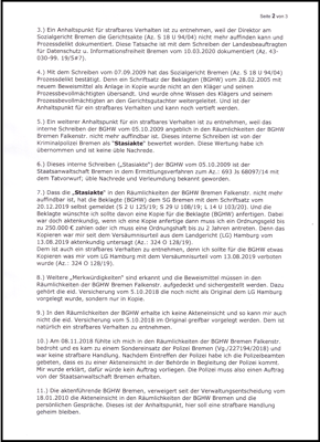 Mein Schreiben an die Staatsanwaltschaft Bremen