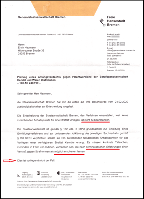 Antwortschreiben der Staatsanwaltschaft Bremen dokumentiert: