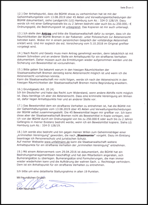 Mein Antwortschreiben an die Staatsanwaltschaft Bremen mit 19 Punkten: