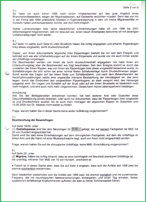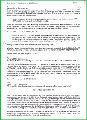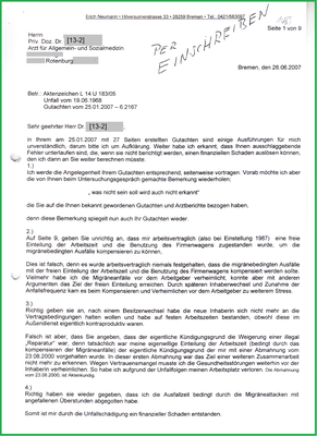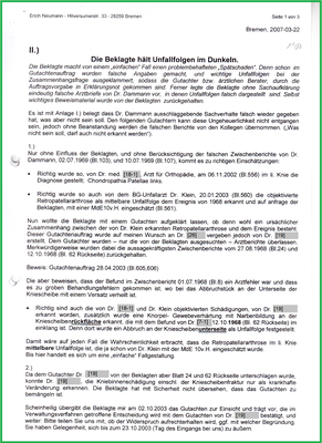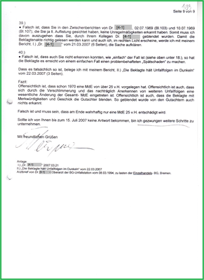 Dem Gutachten konnte aber im Wesentlichen nicht gefolgt werden und habe die Fehler dem Gutachter mit dem folgenden Schreiben vom 26.06.2007 und Anlagen in Kopie zur Berichtigung aufgezeichnet.