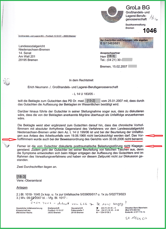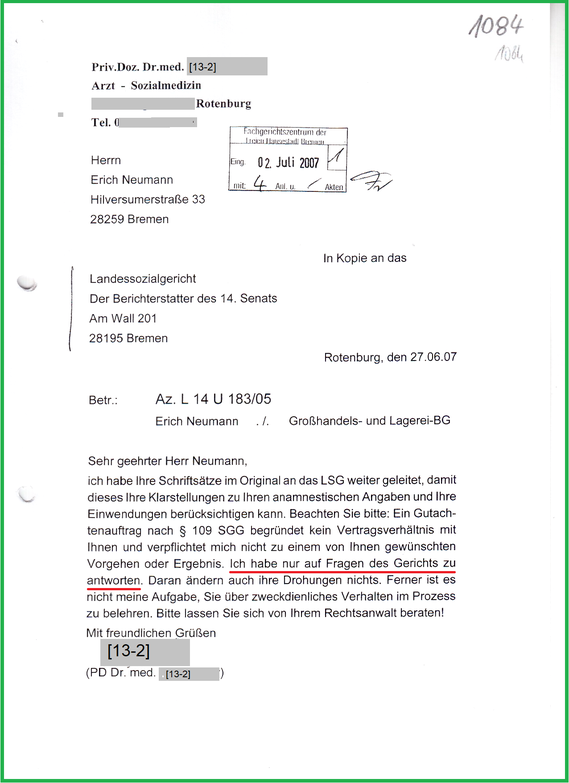 ohne weitere Aufklärung. Und das LSG Bremen hat davon eine Abschrift erhalten. Es wurden aber keine Fragen beantwortet.