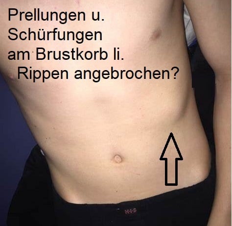 Rippenbogen links etwas vorgewölbt, leicht druckschmerzhaft.