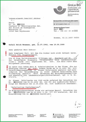 Das Antwortschreiben von dem Geschäftsführer der BGHW Bremen hat offensichtlich gemacht, dass die BGHW an die Einschätzungen der Gutachter gebunden ist. Und ich möchte erreichen, dass die BGHW dieser Gesetzmäßigkeit folgt.