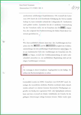 Die Stellungnahme dokumentiert die Bedeutung der Feststellungen der Unfallfolgen.