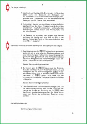 Aber die Diagnose der Unfallfolgen hat die BGHW nicht im Bescheid eingetragen und so erhalte ich auch keine sachgerechte Unfallrente.
